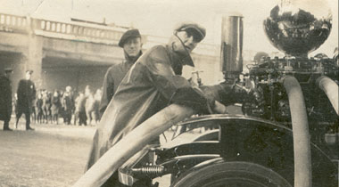 The reviewing stand on Waverly Place consisted of the Mayor of Madison joined by Mrs. Dodge and numerous visiting city fire chiefs and visiting Mayors. Frank Waters presided at the presentation of ceremonies. Mayor William A. Starrett accepted the gift on behalf of the Borough and Madison Fire Department. The engine made a demonstration at the corner of Prospect Street and Kings Road, the current site of the Madison Public Safety Building. The band continued to play on Waverly Place until 6pm.
